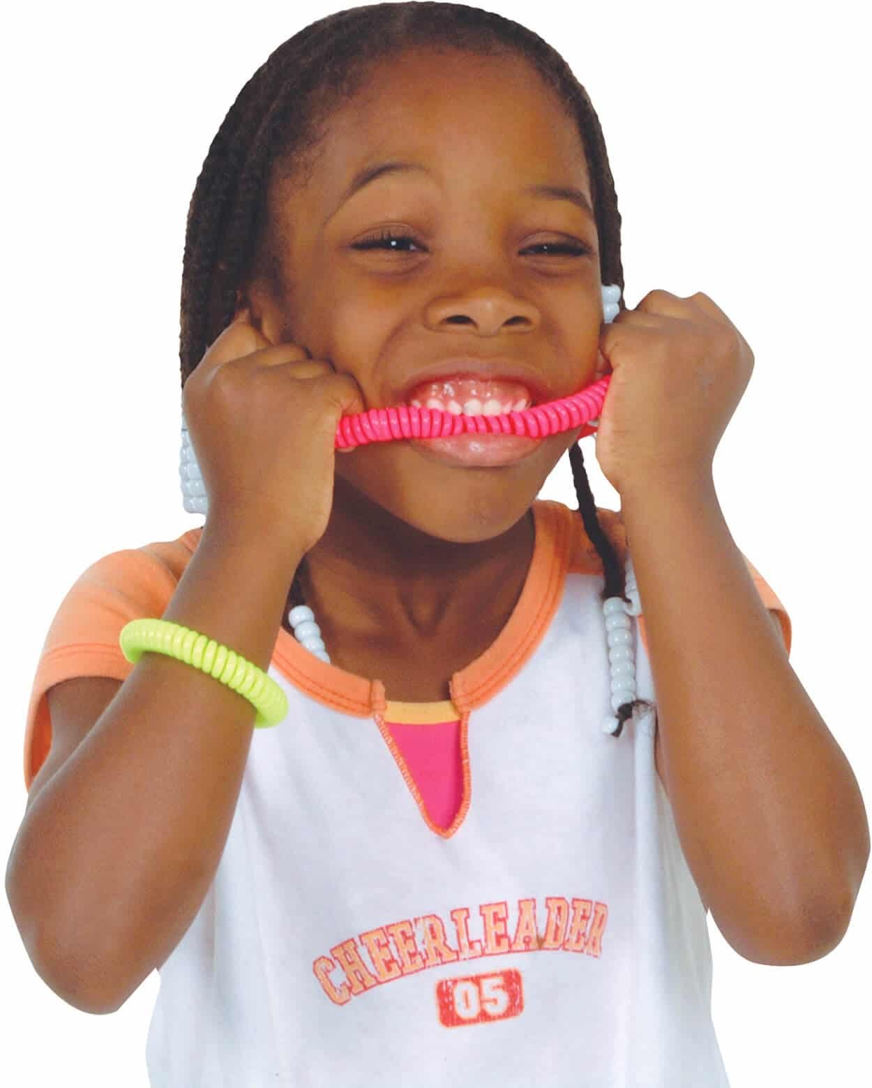 Deze kauwarmband voorkomt dat kinderen op hun kleding gaan kauwen wanneer ze kauwneigingen hebben of op zoek zijn naar kauw prikkels.